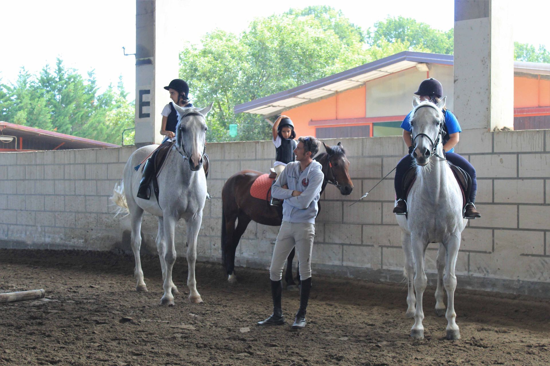 - Ogni mattina sono previsti lezioni a terra per prendere confidenza con l’animale, lezioni di sellaggio e dissellaggio, in cui vengono impartite piccole nozioni di anatomia e, tema da non trascurare, regole da tenere in maneggio.